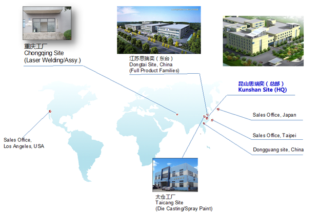思瑞奕電子有限公司成立于2010年10月,注冊資金7500萬人民幣,總部位于江蘇省昆山市,在重慶、江蘇東臺(tái)、江蘇太倉設(shè)有分廠,公司于2011年通過ISO9001/ISO14001認(rèn)證,2013年通過高新技術(shù)企業(yè)和TS16949(IATF)體系認(rèn)定,2016年先后通過知識(shí)產(chǎn)權(quán)管理體系認(rèn)證、安全生產(chǎn)標(biāo)準(zhǔn)化認(rèn)證,2017年獲頒江蘇省民營科技企業(yè)、2018年先后獲得蘇州市人民政府認(rèn)定企業(yè)技術(shù)中心、科技部認(rèn)定中小型科技企業(yè)、江蘇省最具成長性高科技企業(yè)、2020年獲得江蘇省人民政府認(rèn)定企業(yè)技術(shù)中心、2021年獲得蘇州市瞪羚計(jì)劃入庫企業(yè)、江蘇省省級(jí)工程技術(shù)研究中心、江蘇省專精特新中小企業(yè)等榮譽(yù)稱號(hào)......